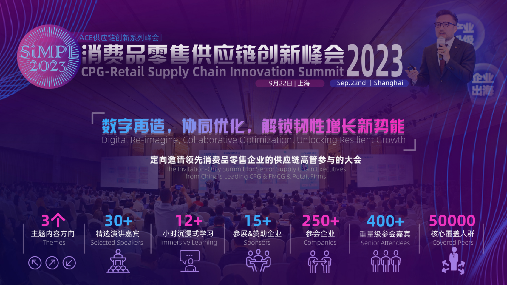SiMPL2023-CPG, with the theme of "Digital Re-Imagine, Collaborative Optimization, Unlocking Resilient Growth", will share how enterprises can gain insights into supply chain trends under the complex and fast-changing environments, carry out digital transformation and re-imagine, formulate consumer-centric supply chain strategies, improve and optimize supply chain efficiency, to empower new potentials of growth.